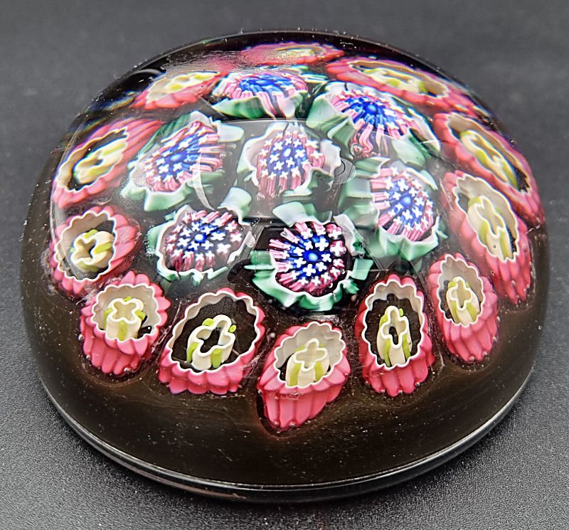 Antique Val St Lambert paperweight. Two row concentric on a black background. Weight : 790g, 92mm diameter, 50mm high