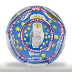 Opposite is shown the rare Whiltefriars paper with millefiori canes in the form of a bee. It is the rarest of this group of exquisite paperwights and as far as we are aware only come in one setup configuration. The large owl paperweigtt has more then one different colourd backgrounds and the large buterfy weight come in a variety of different colur patterns.