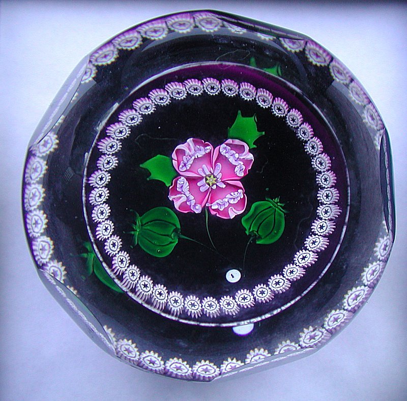This is a 1987 weight. 'Opium Poppy' was made in a limited edition of 250 but in fact closed at 218 so is fairly rare. Five side and one top facet. Designed by Allan Scott.