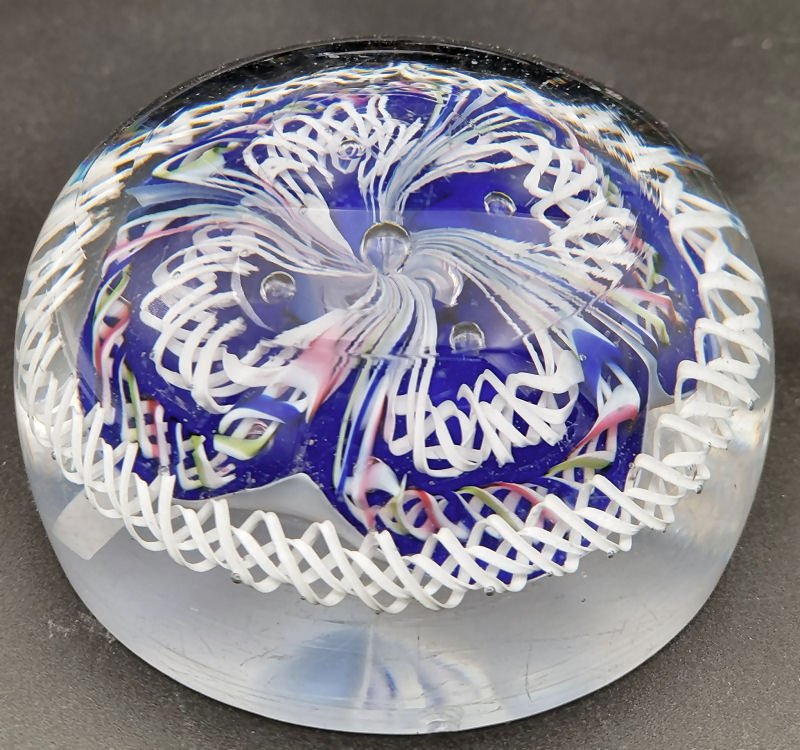 Large outer twisted filigree torsade surrounds a blue blob. This has a deeoer torsade in red, tellow and white. Inner torsade like the outer one but slightly looped. Cross arrangement of intentiaonal small bubbles. Weight : 1080g, 100mm diameter, 53mm high Val St Lambert Page 1Val St Lambert Page 2Val St Lambert Page 3Val St Lambert Page 4Val St Lambert Page 5Val St Lambert Page 6Val St Lambert Page 7Vsl Overlay Cut PaperweightsVal St Lambert from FarfallaVal St Lambert from Dr StammwitzVal St Lambert Page 2 from Dr StammwitzVal St Lambert Page 3 from Dr Stammwitz |