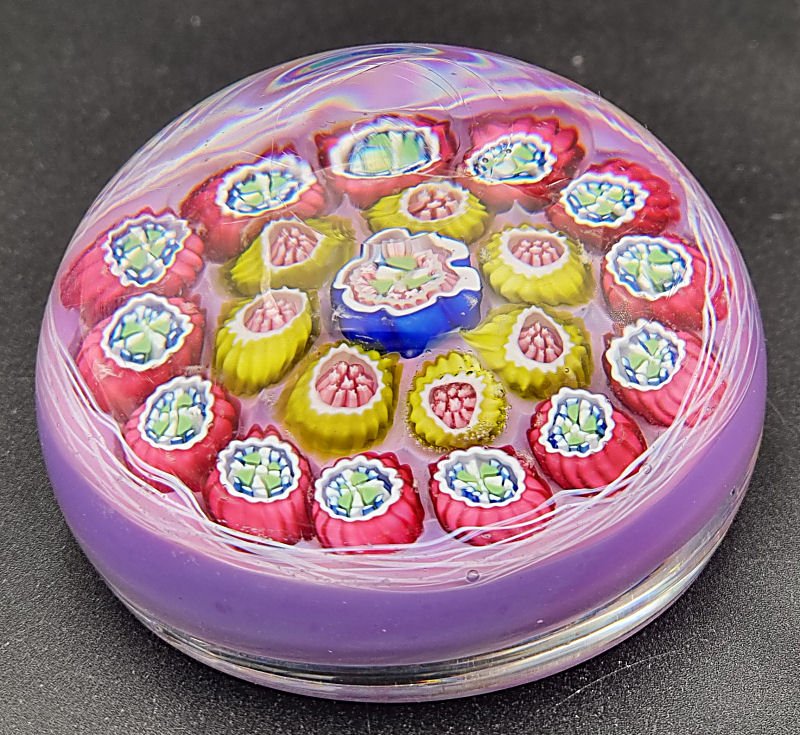Antique Val St Lambert paperweight. Nicely coloured concentric with matched complex canes in the inner and outer rings. Wispy white torsade on a a lavendar base. Weight : 720g, 91mm diameter, 50mm high Val St Lambert Page 1Val St Lambert Page 2Val St Lambert Page 3Val St Lambert Page 4Val St Lambert Page 5Val St Lambert Page 6Val St Lambert Page 7Val St Lambert Page 8Val St Lambert Cut Overlay WeightsVal St Lambert from FarfallaVal St Lambert from Dr StammwitzVal St Lambert Page 2 from Dr StammwitzVal St Lambert Page 3 from Dr Stammwitz |