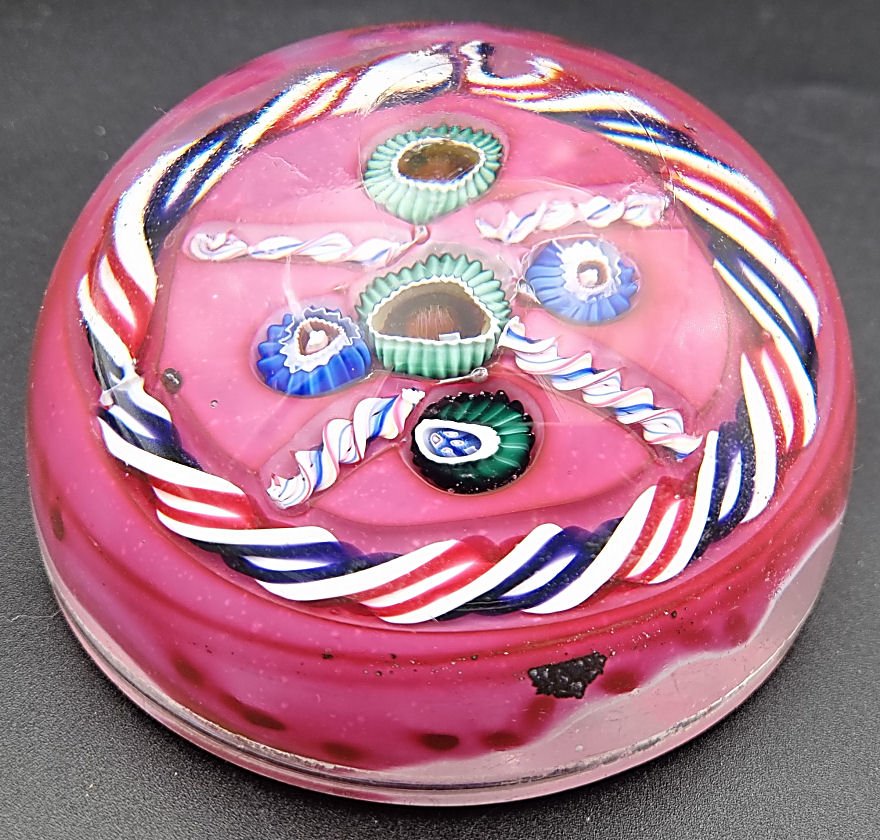 Antique Val St Lambert paperweight. Pink ground with a good red, white and blue torsade, % interior canes seperated by thin twisted strips the sake colur as the torsade. Weight: 800g Width: 9.0cm Height: 5.3cm Val St Lambert Page 1Val St Lambert Page 2Val St Lambert Page 3Val St Lambert Page 4Val St Lambert Page 5Val St Lambert Page 6Val St Lambert Page 7Vsl Overlay Cut PaperweightsVal St Lambert from FarfallaVal St Lambert from Dr StammwitzVal St Lambert Page 2 from Dr StammwitzVal St Lambert Page 3 from Dr Stammwitz |