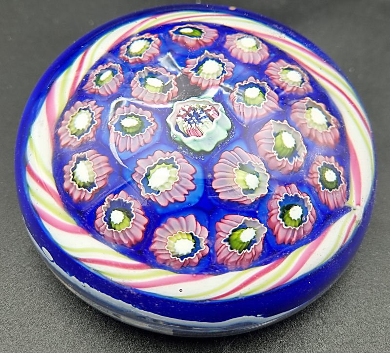 Antique Val St Lambert paperweight. Pink ground with a royal blue ground, yrllow, red an white torsade, two row concencentric with a complex central cane. Weight: 645g Width: 9.0cm Height: 4.8cm Val St Lambert Page 1Val St Lambert Page 2Val St Lambert Page 3Val St Lambert Page 4Val St Lambert Page 5Val St Lambert Page 6Val St Lambert Page 7Vsl Overlay Cut PaperweightsVal St Lambert from FarfallaVal St Lambert from Dr StammwitzVal St Lambert Page 2 from Dr StammwitzVal St Lambert Page 3 from Dr Stammwitz![]() |